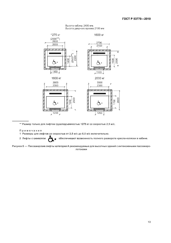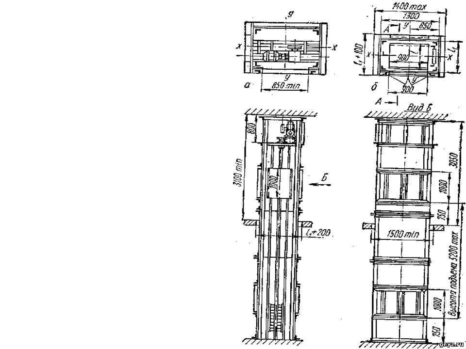 Согласно ГОСТ габариты грузового лифта определяются следующими параметрами: