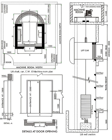 Размеры шахты подъемника зависят от ряда факторов, в том числе: