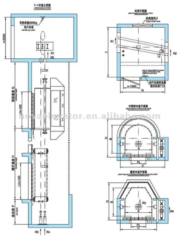 Определяется расстоянием между передней и задней стекой кабины лифта без учета поручней, защитных панелей и декоративных накладок. Обычно размер грузового лифта в жилом доме составляет от 1580 до 2580 мм. - Высота кабины — обычно составляет 2000 мм. Высота грузового лифта измеряется между полом и потолком кабины без учета отделки и осветительной техники.