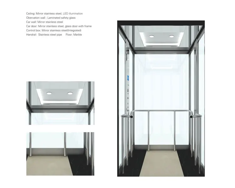 — панорамные, отличаются от обычных пассажирских отсутствием шахты.