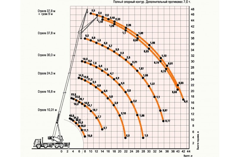 Грузовысотные характеристики автокрана 40 тонн