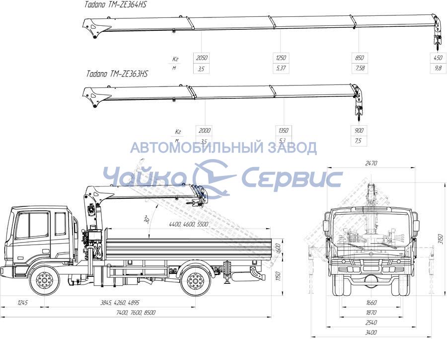 Грузоподъемность платформы составляет 7 тонн, габариты платформы зависят от модификации Long или Extra Long.