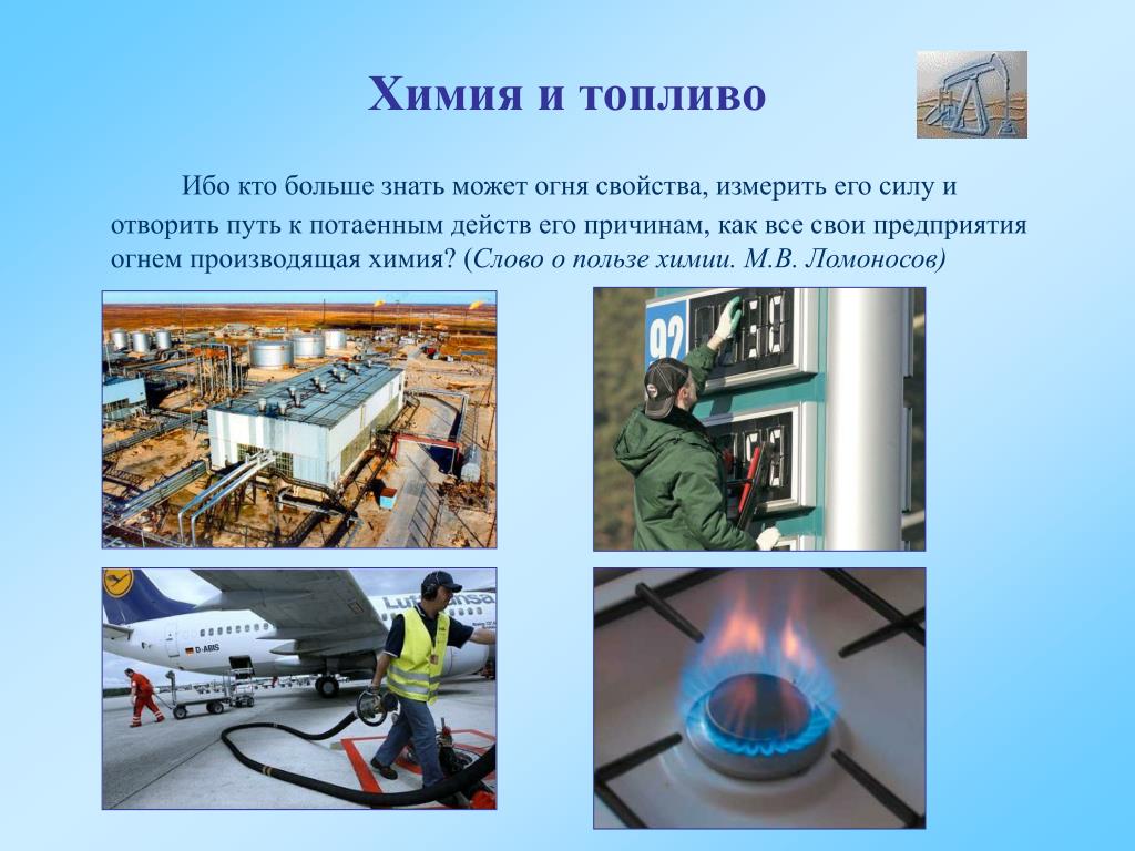 С развитием химии стало возможно производить более эффективные топлива, что, в свою очередь, позволило водящим автомобиль путешествовать дальше и дешевле. Ныне химии приходится иметь дело с последствиями: атмосфера задыхается от выхлопных газов, а ресурсы, благодаря которым мы катаемся туда и сюда ежедневно, истощаются.