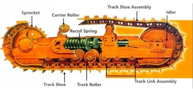 Схема деталей ходовой части экскаватора
