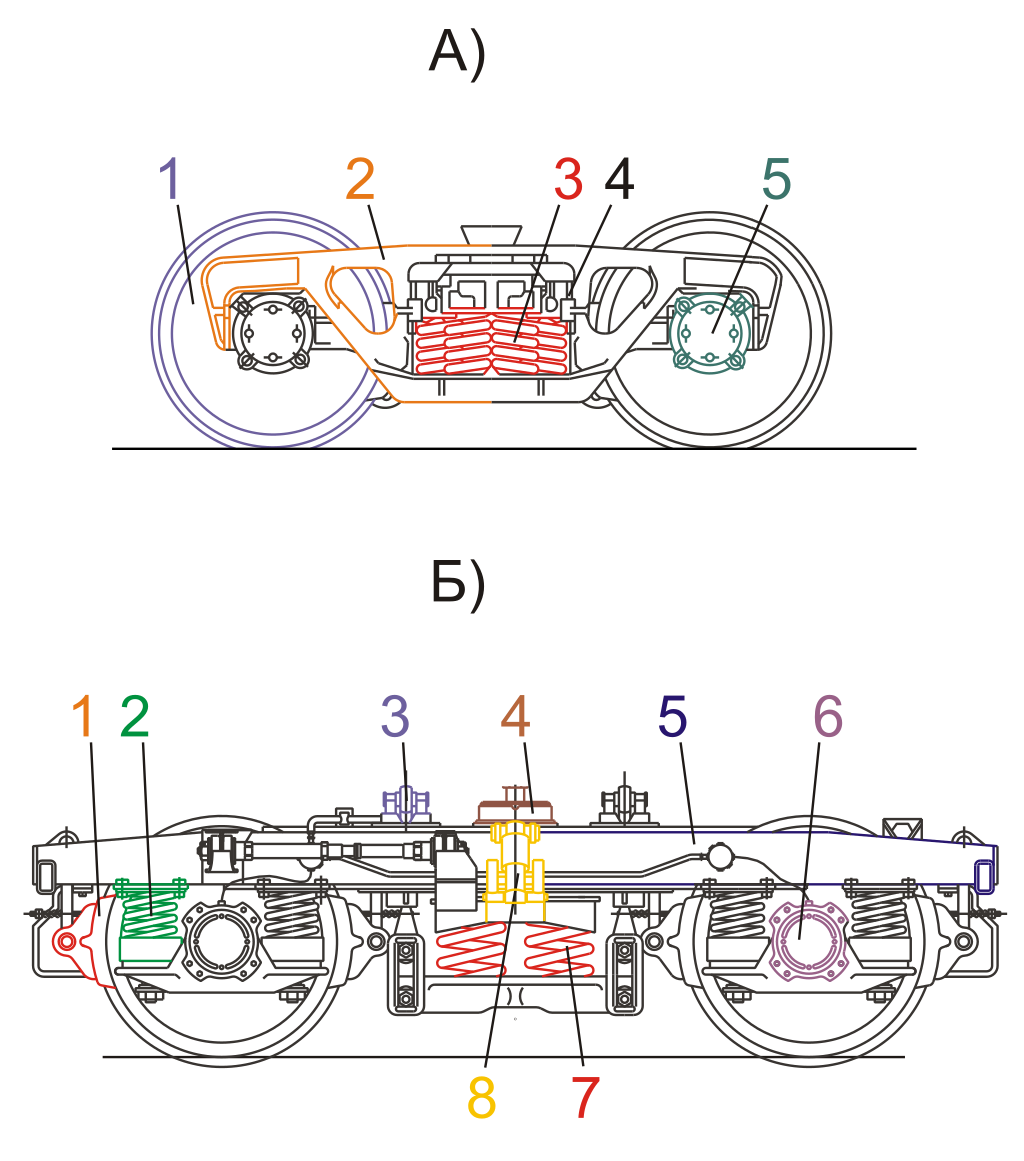 обеспечивают нужную плавность хода вагона. Устанавливаются они по концам кузова