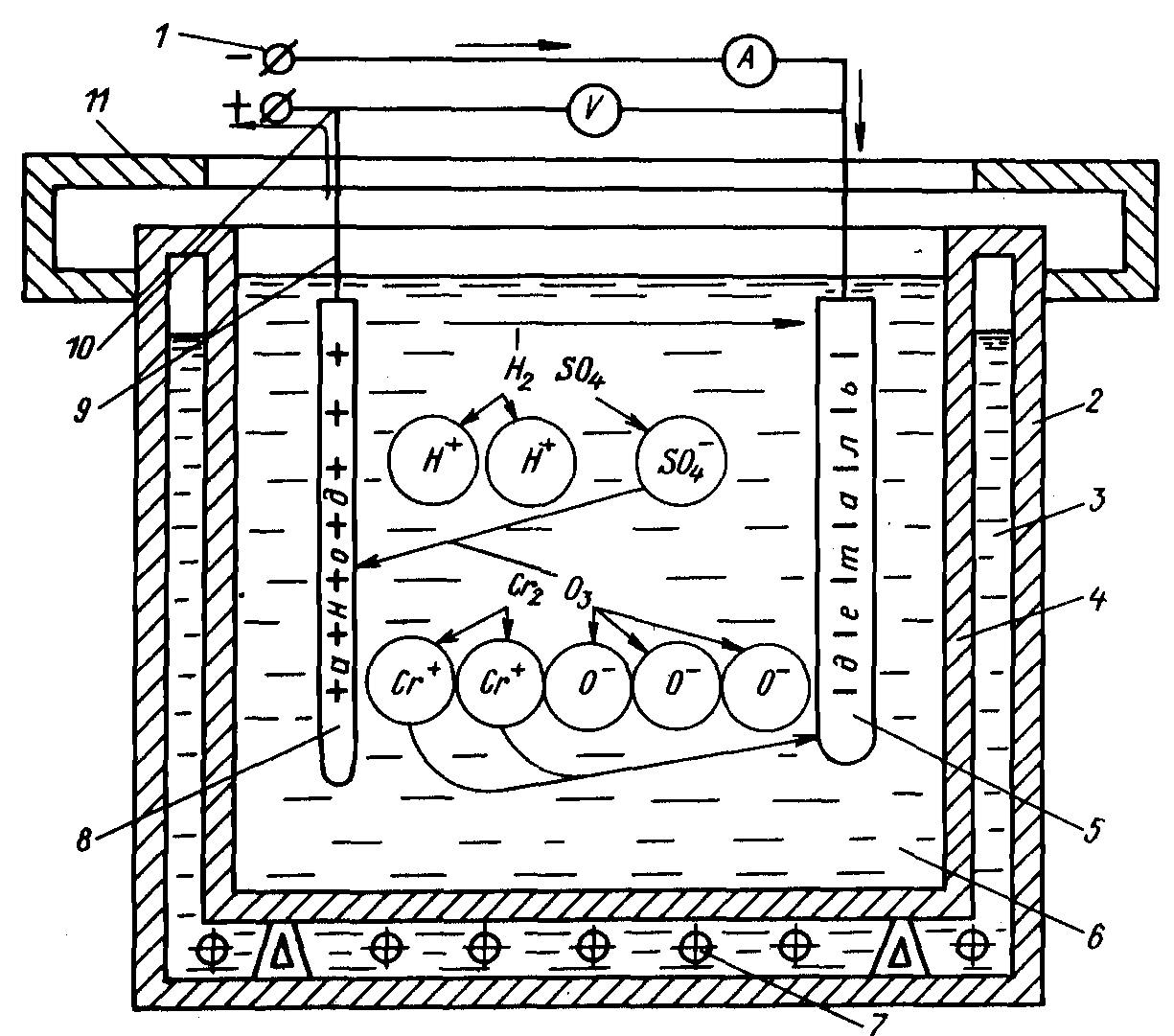 Затем через гальваническую ванну пропускают электрический ток в течение определенного времени. Металлические объекты можно покрывать медленно или быстро, в зависимости от силы тока. Требуемое время варьируется в зависимости от толщины необходимого хромового покрытия и применяемого тока.