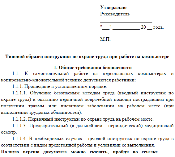 1.4. Все вновь прибывшие на работу, а также лица, направленные на выполнение работ в отделение в отдельные периоды времени, должны пройти вводный инструктаж по безопасности труда (ГОСТ 12.0.004.79) у инженера по охране труда или лица, ответственного за охрану труда и назначенного приказом по учреждению.