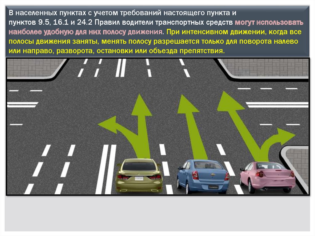 Тогда становится понятным, как интенсивное движение влияет на выбор скорости и на расположение транспортных средств на проезжей части, о чем говорится в 9 и 10 разделе ПДД.