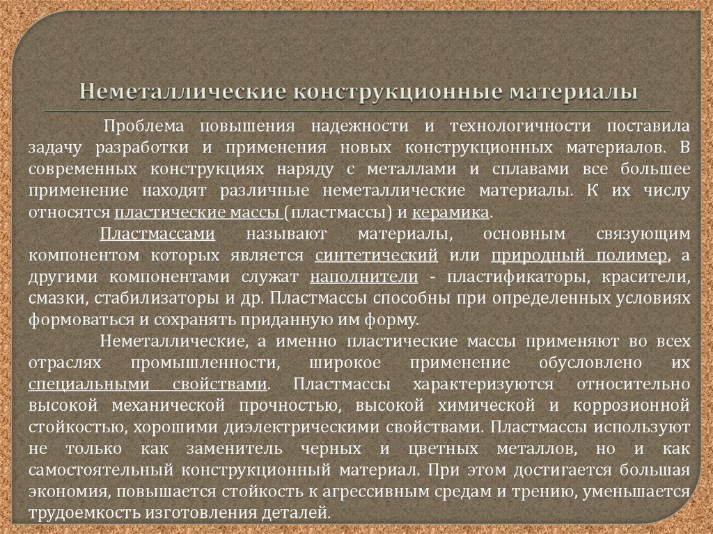 - Применение неметаллических материалов