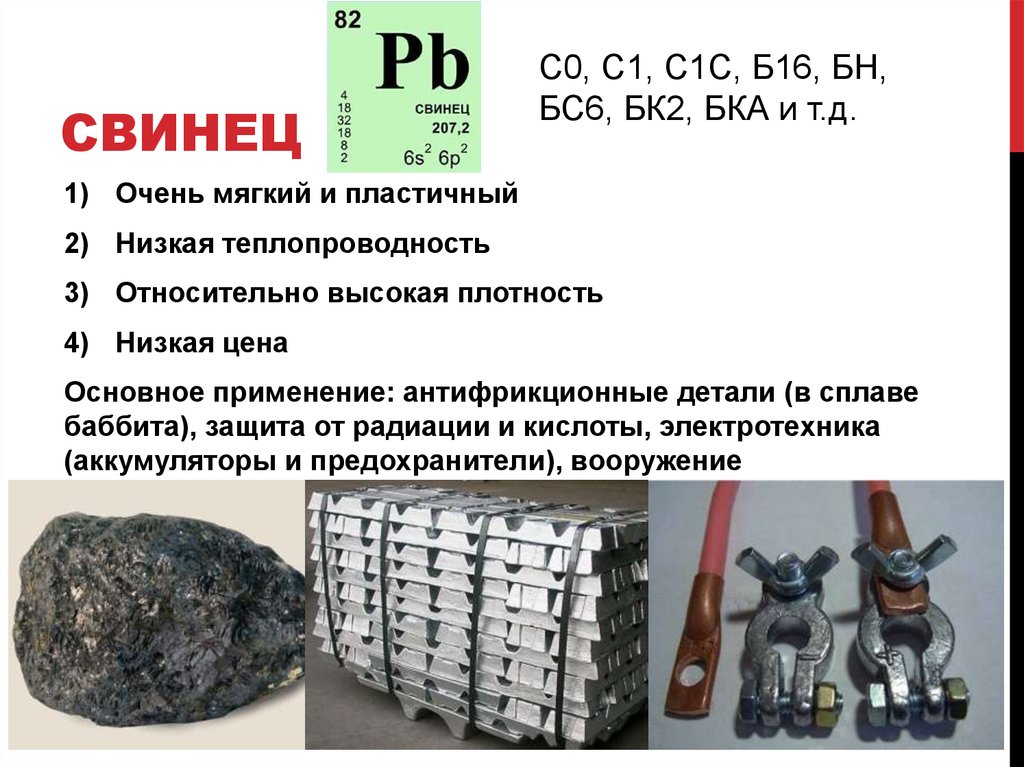 - Максимальное количество (90%) свинца присутствует в баббите марки БС6. Его применяют в узлах и деталях тракторных двигателей.