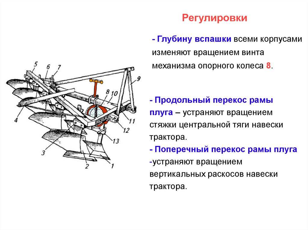Регулировка глубины вспашки