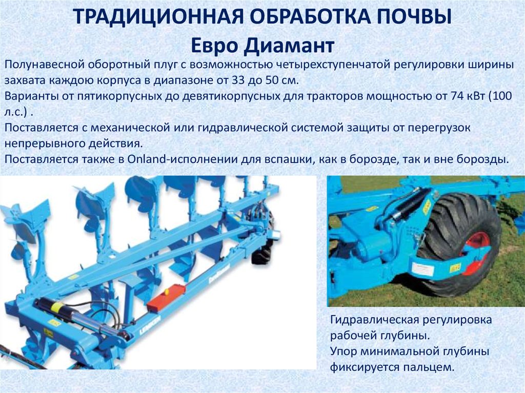 При этом руководитель направления «Плуги» компании Kverneland Игорь Иванов обращает внимание, что в базовой комплектации мощных тракторов, представленных на нашем рынке, часто отсутствует трехточечная навеска. Потому в хозяйстве должны заранее подумать о заказе этой опции на заводе или найти другие решения для агрегатирования таких тракторов с плугами, советует он. Например, существует специальная тележка-переходник, позволяющая использовать с такими тракторами широкозахватные высокопроизводительные плуги.