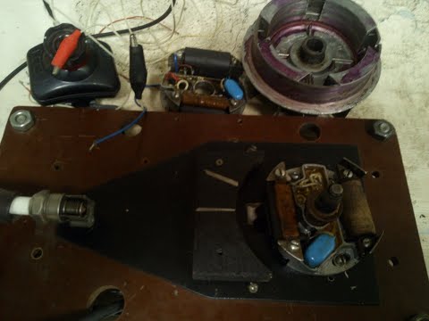 - Первым делом мастер проверяет работоспособность маховика, который находится в двигателе до того момента, пока не произойдет размыкание контактов, расположенных в магнето.