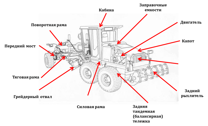 Грейдер состоит из таких элементов: