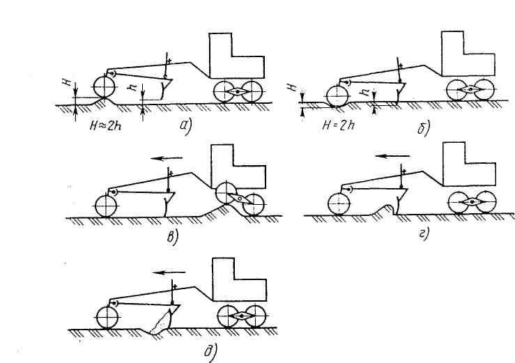 Наклон отвала вперед или назад также изменяет глубину резания по всему отвалу.