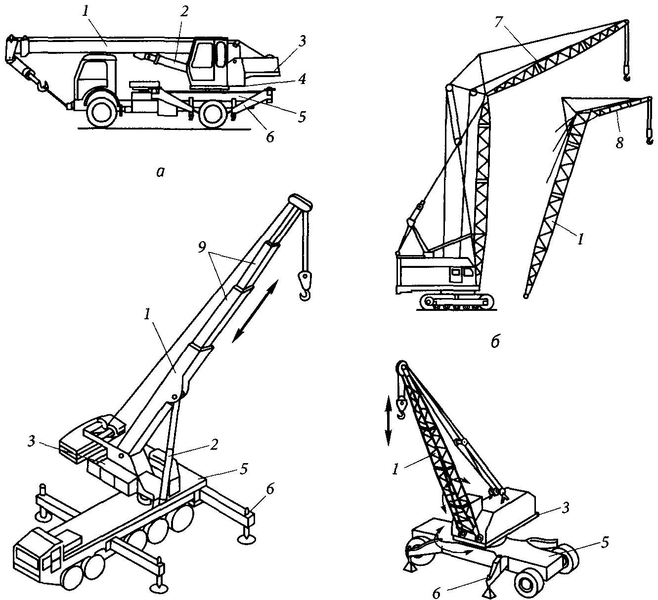 Грузоподъёмные краны по конструкции можно разделить на следующие основные типы: