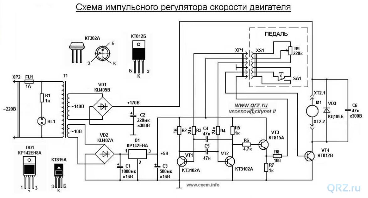 Электродвигатель регулятора скорости переменного тока имеет следующие особенности при использовании этого фазового регулятора с обратной связью.