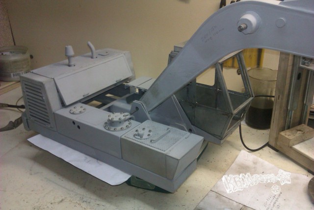 Наконец, переверните экскаватор и добавьте в заднюю часть ковша карман для материала для копания.