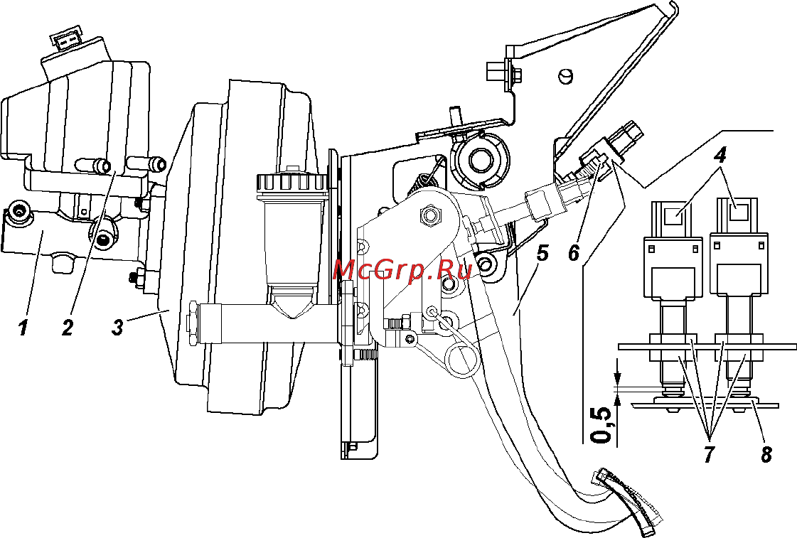 Датчик положения педали сцепления опрашивается контроллером для распознания отключения режима Круиз при воздействии на нее.