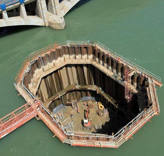 Возведение мостов, строительство портов или причалов требует проведения сложных инженерных работ в воде. В древности эту проблему решали просто: для строительства люди искали в водоемах мелкие места для или возводили насыпи. Но современные технологии позволяют строителям творить чудеса и работать прямо на дне моря или реки, не замочив, как это принято говорить, ног.