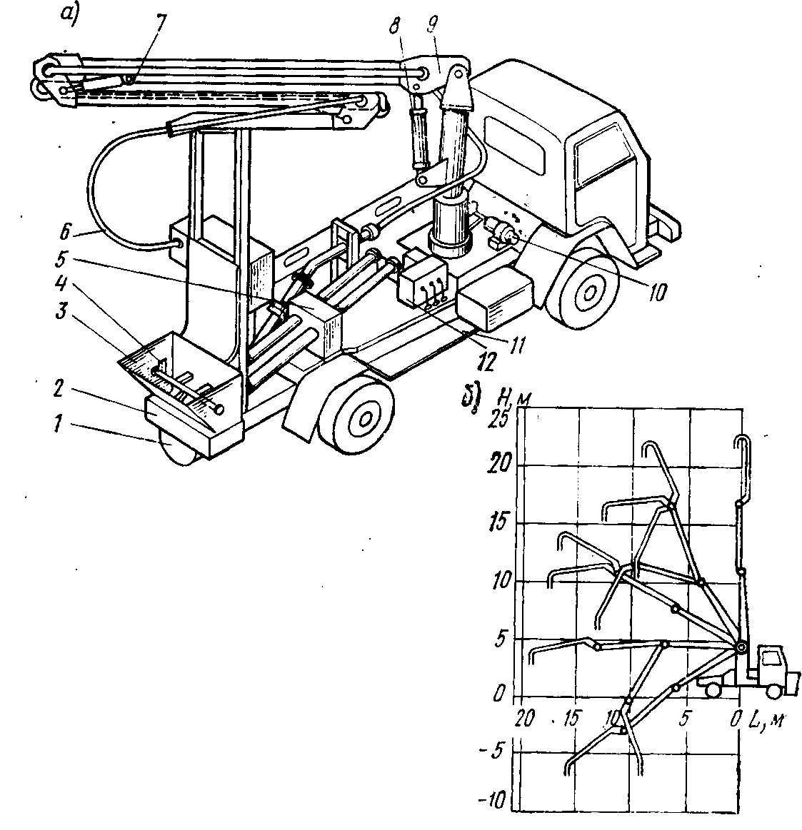 У них есть длинная гибкая стрела с дистанционным управлением, состоящая из шарнирных секций, которые включают в себя гибкий шланг, предназначенный для перемещения бетона. Рука вытягивается в воздух, как журавль.