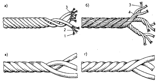 Упрощенно конструкция – три по отдельности закрученных (в одну сторону) пряди скручиваются затем все вместе (в другую сторону).