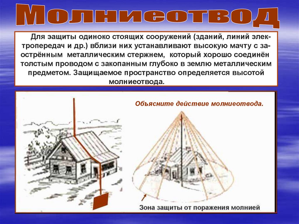 Системы молниезащиты используются в тысячах зданий, жилых домов, заводов, башен и даже на стартовой площадке космического корабля «Шаттл».