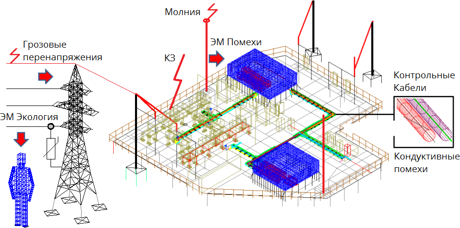 - Защита силовых и телекоммуникационных линий, расположенных вне сооружения, включая трубопроводы.