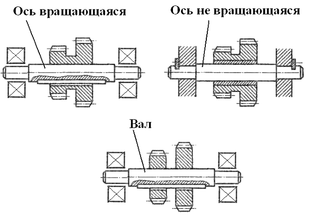 Для обеспечения постоянного положения оси вращения зубчатых колес, звездочек, шкивов и других вращающихся деталей их устанавливают на валах или осях.