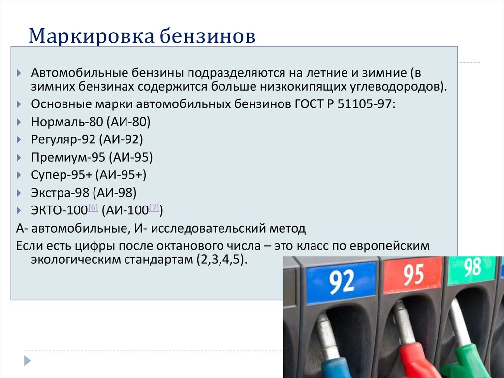 Бензин авто, марки бензина существующие для заправки автомобиля