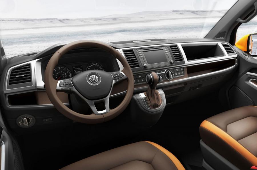 Как и Multivan Highline, ее легко узнать по 17-дюймовым легкосплавным колёсным дискам Cascavel серебристого цвета, противотуманным фарам, тонированным стеклам, двум сдвижным дверям с электроприводом и хромированному молдингу. Салон выполнен со вкусом: трёхзонный автоматический кондиционер Climatronic, кожаная обивка и комфортное освещение делают его привлекательным для длительных путешествий. Передняя панель станет такой же, как в Multivan Highline. В стандартную комплектацию входит инфомедиа система Composition Color с цветным сенсорным TFT-дисплеем с диагональю 5 дюймов и системой громкой связи, а также электродоводчик задней подъёмной двери.