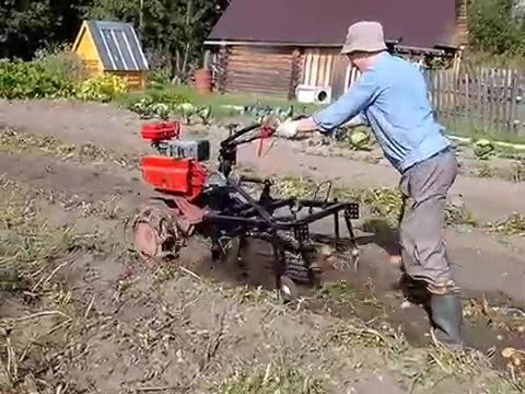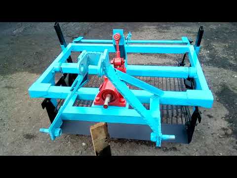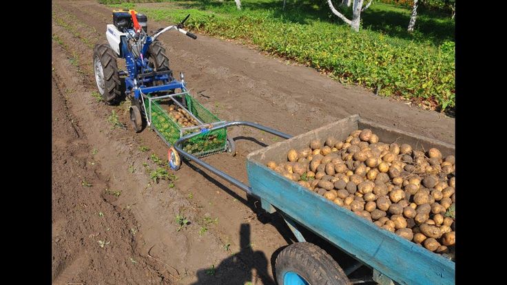 На фото работа картофелекопателя в агрегате с мотоблоком на приусадебном участке