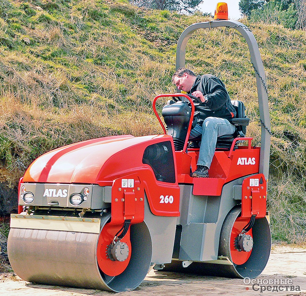 Немецкая компания Atlas Weycor включила в свою линейку дорожные катки относительно недавно, в 2005 г., но они уже успели завоевать доверие у эксплуатирующих организаций. Катки для уплотнения грунта включают 5 моделей массой от 7100 до 13 800 кг. Большое внимание при разработке было уделено конструкции вальца. Вместо труднодоступных внутренних подшипников, которые используются основной массой производителей, валец катка Atlas оборудован внешними подшипниками. Виброузел установлен в закрытой маслонепроницаемой трубе, которая поддерживает внешние диски вальца. Это важно, так как предотвращает наружные диски от сильной вибрации. Внутренний вал эксцентрика (который содержит стальные шарики в сухой графитовой смазке) и весь виброузел работает не в масляной ванне, как это обычно бывает, а вращается над ее поверхностью. Во время его работы образуется масляный туман, который и служит для смазки. Таким образом, создается закрытая система, практически не требующая обслуживания, с обильной смазкой подшипников. Замена масла в трубе, в объеме 9 л, требуется через каждые 2000 часов работы. Валец крепится к рамке только с помощью болтов, поэтому легко может быть снят и разобран в полевых условиях без применения подъемного оборудования. Шарнирному сочленению маятникового типа (единому для всех машин) также требуется минимальное обслуживание благодаря посадочным местам с тефлоновым покрытием. Просторная кабина ROPS с панорамным обзором и низкой посадкой, для снижения общей высоты машины, с индивидуально настраиваемым сиденьем оборудована единым джойстиком с пятью кнопками для маневрирования, изменения направления движения и управления виброузлом. Кабина установлена на специальных подшипниках, которые гасят вибрацию. Особая форма стекол способствует снижению уровня шума. Заднее стекло оборудовано подогревом. Функция ECO Speed служит для обеспечения стабильной работы гидравлической системы со 100%-ной мощностью при пониженных оборотах двигателя (до 400 об/мин ниже номинального числа оборотов). Активация функции позволяет сохранить уплотняющую способность вальца одновременно с понижением расхода топлива.