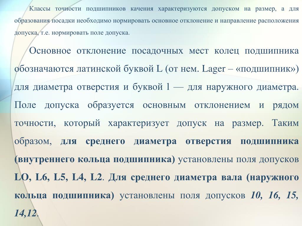 Внимание. ГОСТ 520-2011 обязывает потребителя подшипника любого класса точности (разработчика документации на весь механизм) при разработке документации выполнять требования ГОСТ 3325-85 «Поля допусков и технические требования к посадочным поверхностям валов и корпусов».