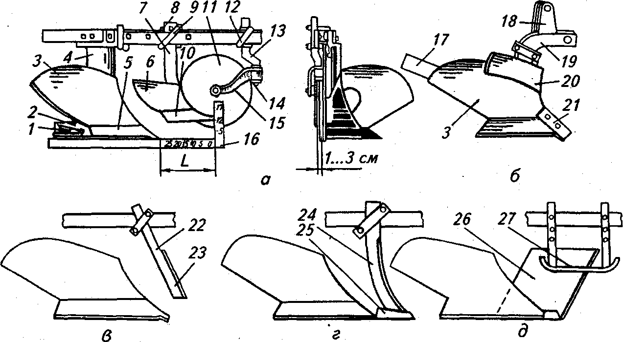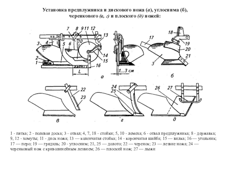 2 – предплужник, 3 – лемех, 4 – отвал,