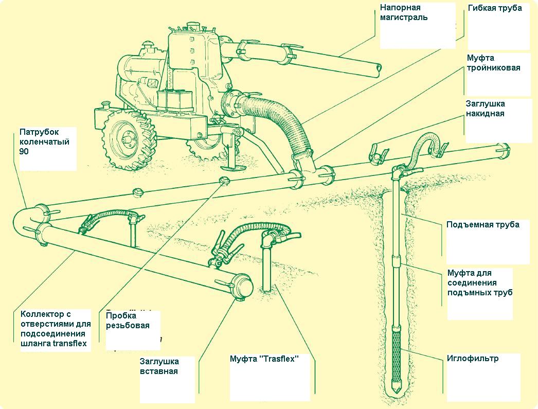Насосный агрегат может держать высокий вакуум, но не откачивать воду из грунта. Необходимо прежде всего проверить состояние внутренней поверхности шлангов, соединяющих насосный агрегат со всасывающим коллектором.