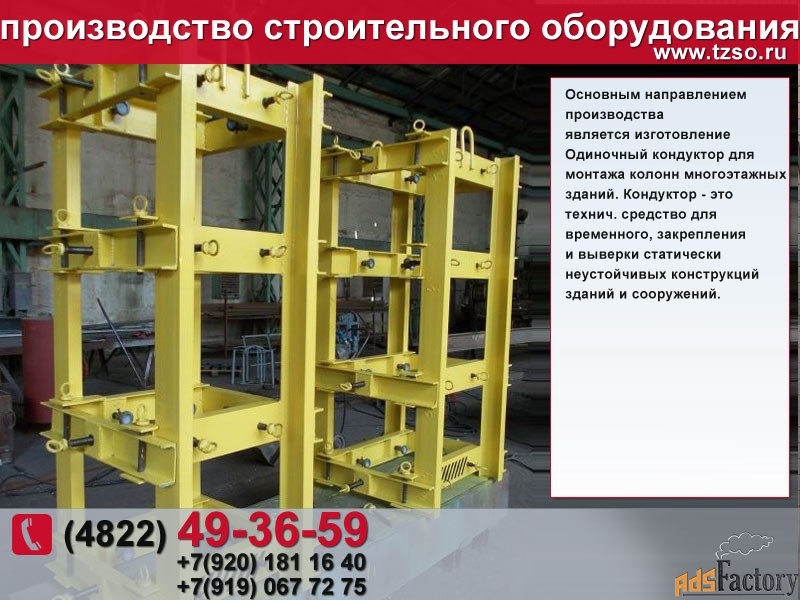 Конструкция кондуктора проста и надежна в работе, так как исключается возможное отклонение от вертикали и достигается высокая точность установки колонны. Кроме всего вышеперечисленного кондуктор обеспечивает возможность монтажа различных размеров сечения колонн, что увеличивает его технологические возможности.