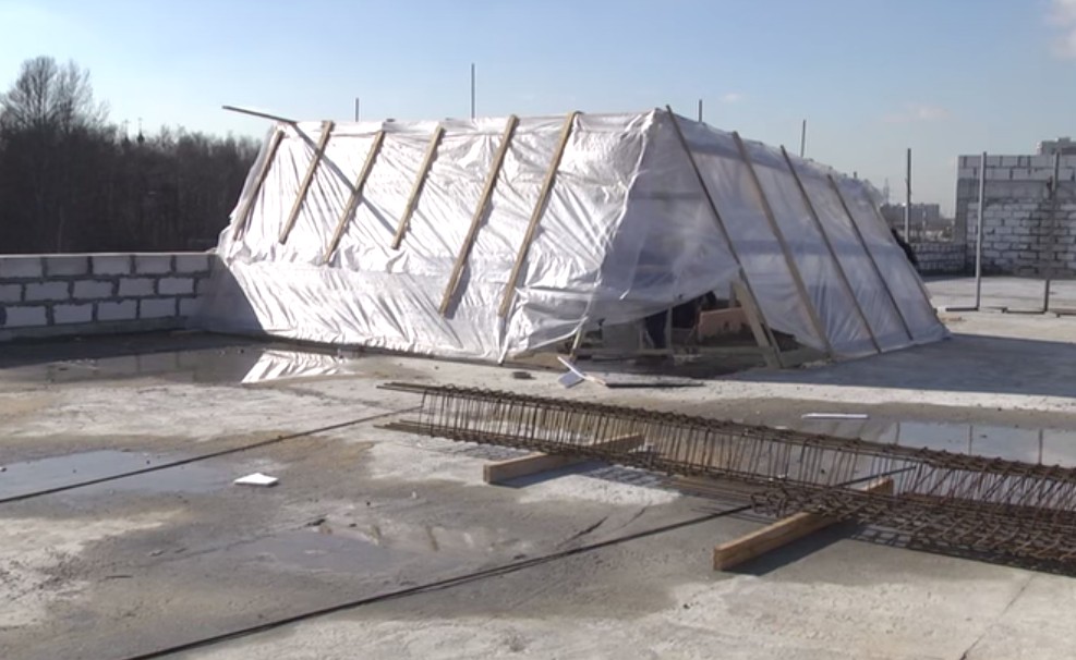 Зимнее бетонирование в тепляке из термоусадочной пленки