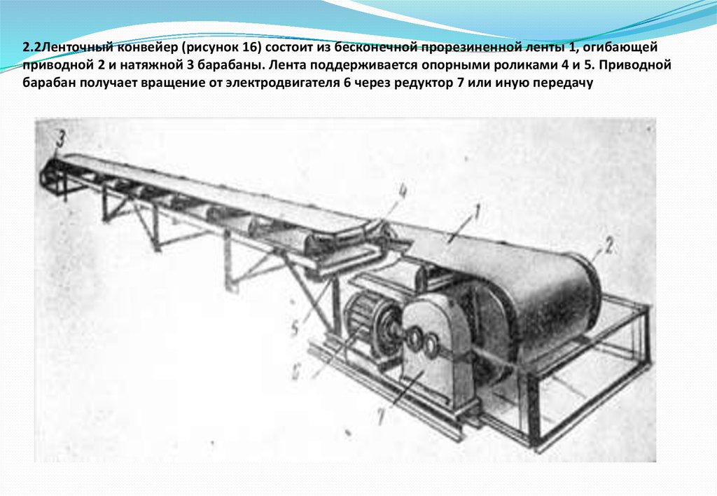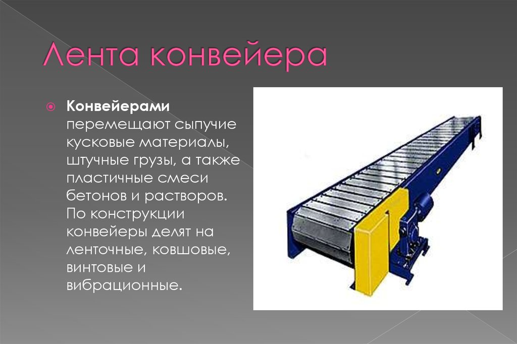 - Лента транспортера представляет собой замкнутую бесконечную поверхность, которая служит для транспортировки грузов.