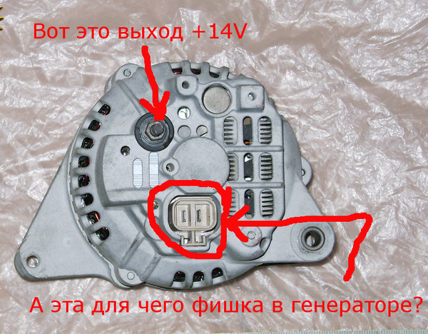 Генератор переменного тока обязательно имеет выход для сигнальной лампы. Этот выход также используется для подачи небольшого напряжения для намагничивания ротора. Этот контакт обозначен буквой “L”. (лампа). Горящая лампа указывает на отсутствие заряда. Кстати, лампа гаснет, когда потенциалы выравниваются, т.е. когда на контакте L появляется “плюс”.