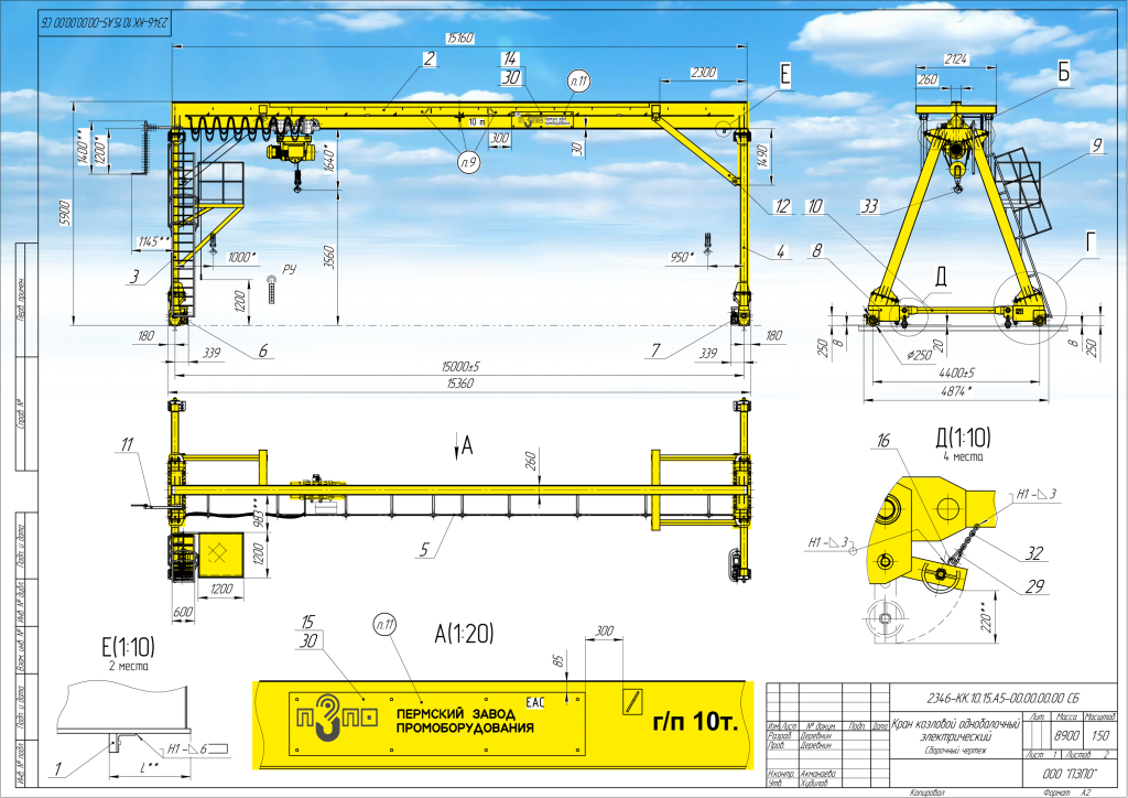 - Легкий козловой кран — 10 тонн