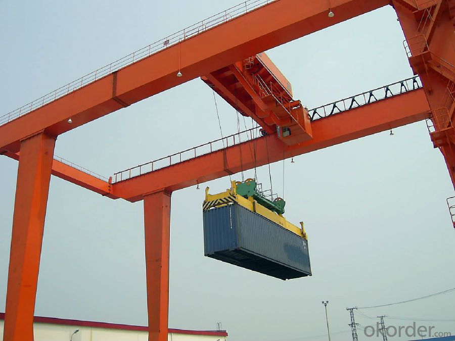 Контейнерные краны (контейнерные перегружатели) типа RMG работают на рельсовом ходу и обслуживают, как правило, железнодорожный фронт терминала.