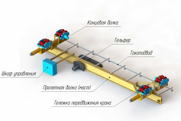 Кран-балка конструктивно представляют собой пролетную балку с закрепленной на ней талью, которая перемещается вдоль подкрановых путей и таким образом обеспечивает перемещение груза в горизонтальной и вертикальной плоскостях.