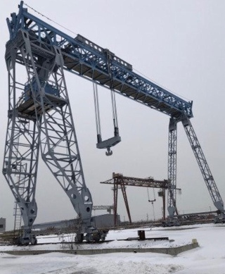 Козловой кран предназначен для погрузочно-разгрузочных работ в открытых и закрытых складах. Кран мостового типа, который устанавливается на опоры и перемещается по рельсам.