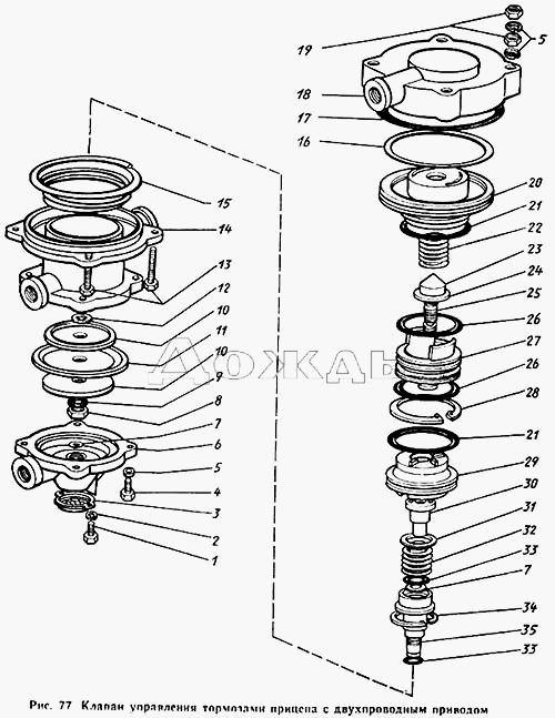 Кран управления тормозами прицепа с двухпроводным приводом камаз