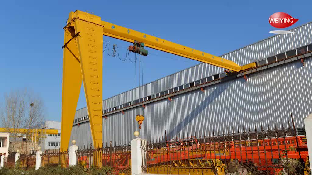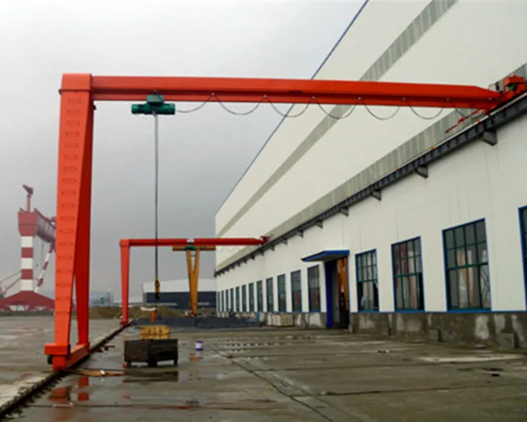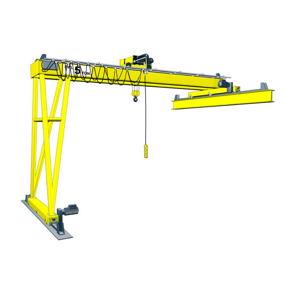 Они состоят из портальной конструкции, состоящей из горизонтальной балки (по которой движется подъемник), соединенной одним концом с одной вертикальной колонной. Другой конец балки проходит по приподнятому рельсу, который крепится либо к стене здания, либо к колонне/колоннам, либо к специальной отдельно стоящей стальной конструкции портала. Основание вертикальной колонны обычно проходит по полу с помощью шин или рельсов на уровне земли.