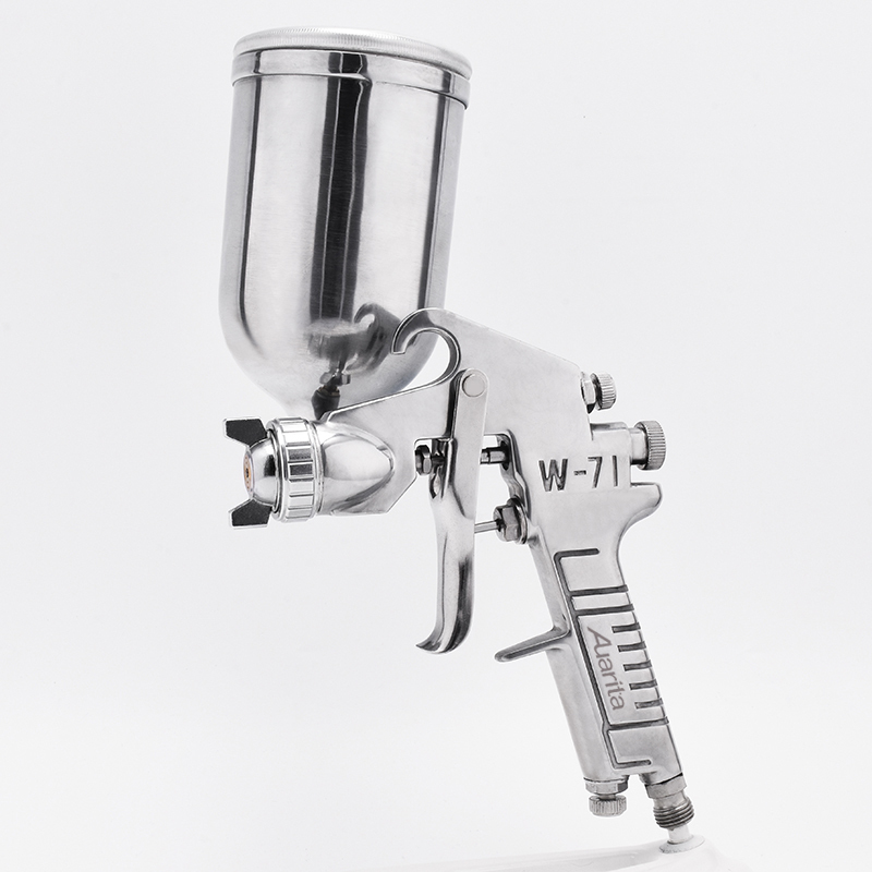 Корпус ручного краскораспылителя R-71-P выполнен из полированного алюминия. Удобная для захвата форма рукоятки способствуют продолжительной работе без излишнего утомления. Гладкая поверхность пистолета-распылителя также уменьшает затраты по очистке и обслуживанию. Материалопроводящие каналы изготовлены из латуни, а материальные форсунки и материальные иглы изготовлены из нержавеющей стали, что делает краскораспылители R-71-P подходящими для распыления абразивных материалов.