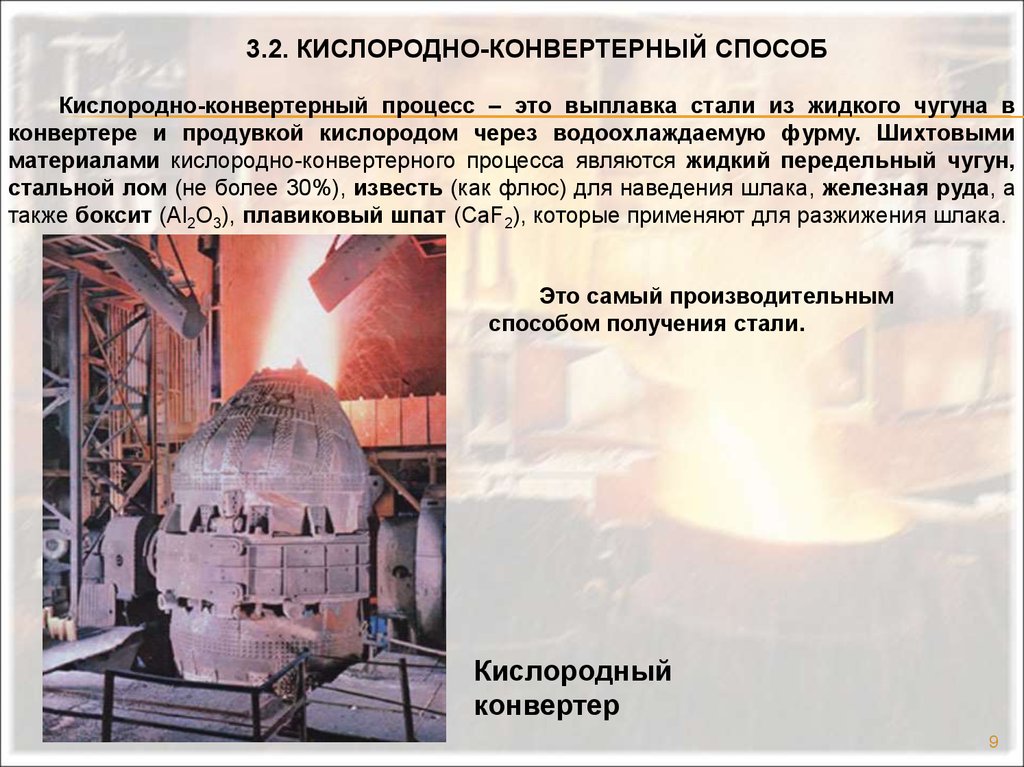 Процесс производства стали из расплавленного железа и металлолома. Мартеновская печь имеет неглубокий под и свод, которые помогают удалять примеси из расплавленного железа.
