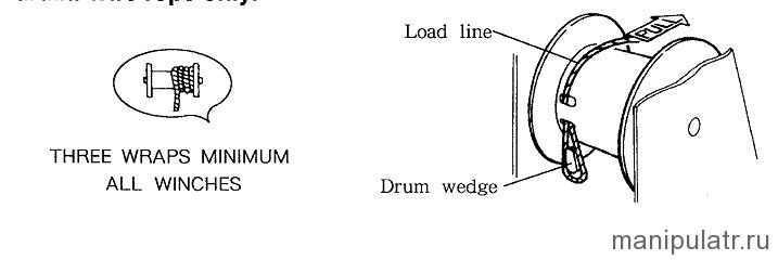 (ii) Если на барабане есть выходящий трос, удалите его свободной намоткой, отключив муфту или рычаг.