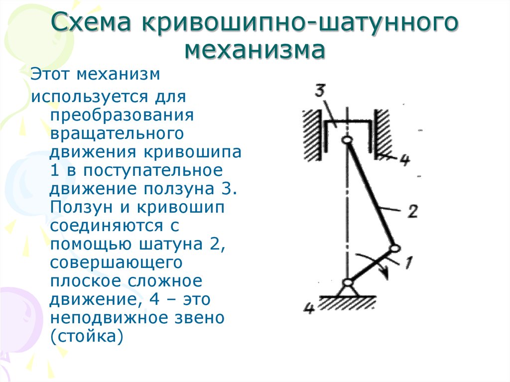 Составляющие кривошипно-шатунного механизма подразделяются на